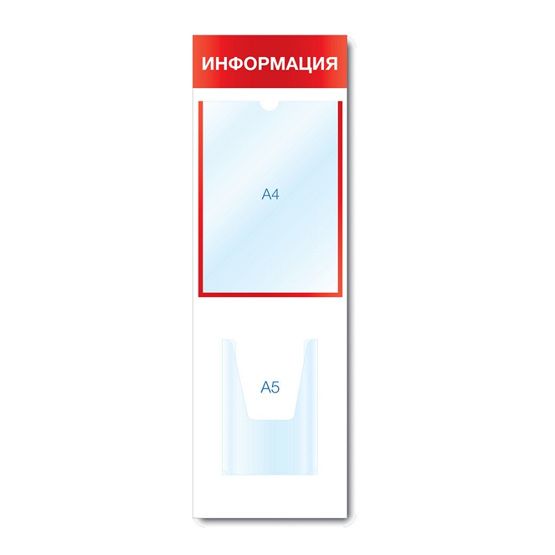 Карманы расположены вертикально, закреплены профессиональным вспененным скотчем 3M. Стенд предназначен для использования внутри помещения. Надпись нанесена методом УФ-печати.