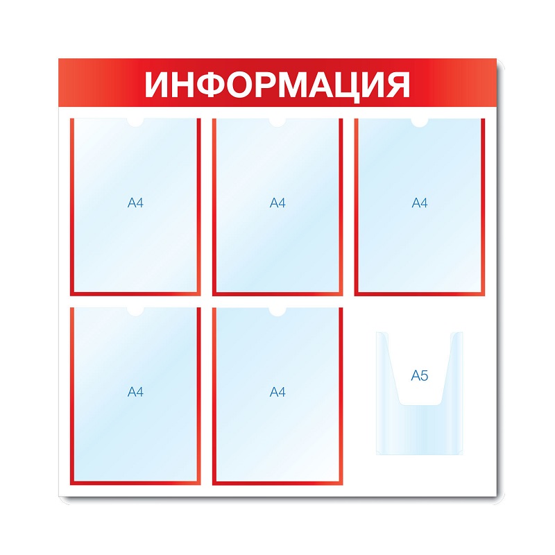 Карманы расположены вертикально, закреплены профессиональным вспененным скотчем 3M. Стенд предназначен для использования внутри помещения. Надпись нанесена методом УФ-печати.