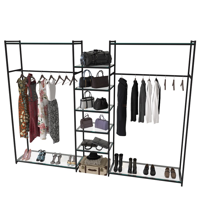 Стеллаж для магазина со стеклянной полкой KC2213(черн)
