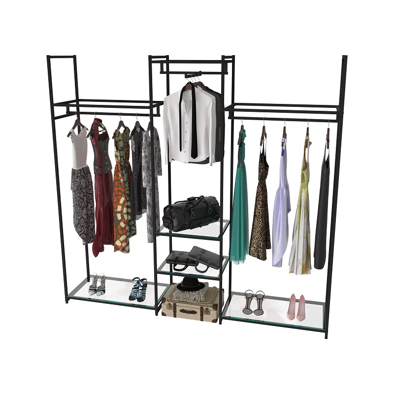 Стеллаж для магазина со стеклянной полкой KC2203(черн)